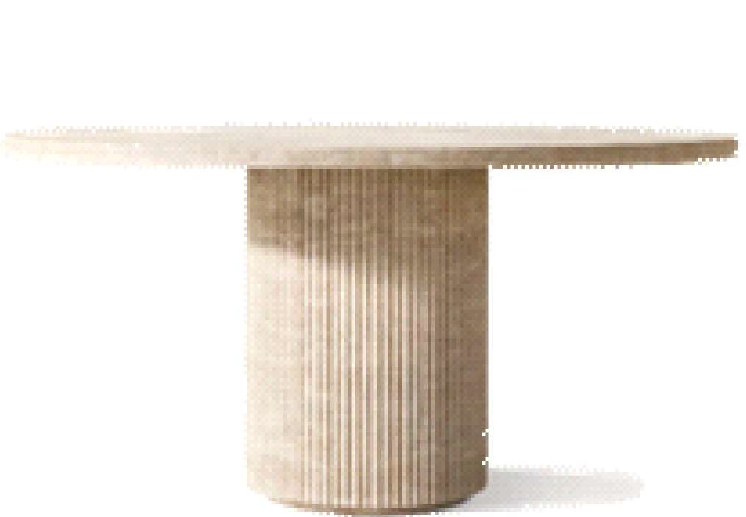 Mesa para terraza con cubierta en Travertino Ivory y Base en Travertino Puebla con estriado vertical.